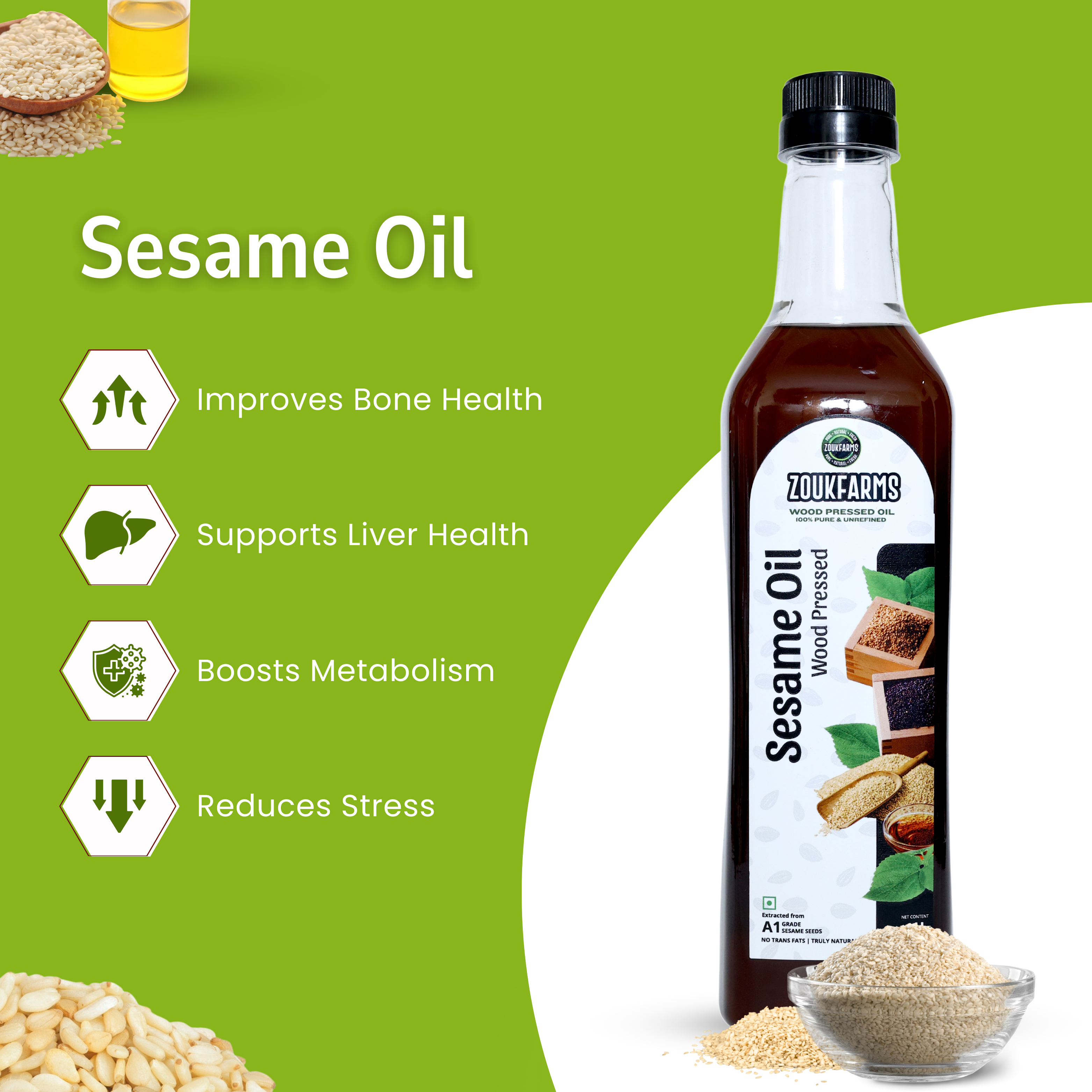 Experience the authentic richness of Zoukfarm Sesame Oil, crafted using a 5000-year-old traditional Kohlu (wood press) method to ensure unmatched purity and quality. Our process begins with hand-selected sesame seeds, which are cold-pressed in wooden press to maintain their natural nutrients, aroma, and flavor. This gentle extraction technique preserves the oil's integrity, resulting in a pure and unrefined product that enhances both flavor and wellness.